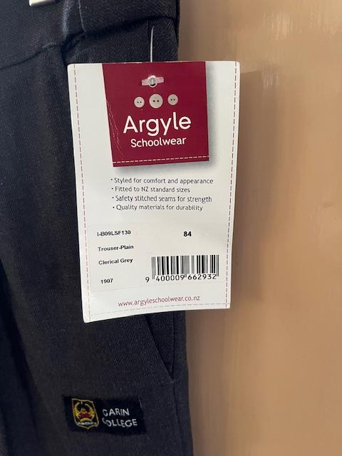 Wool trousers, NZ made. Permitted to be worn by any student in winter.