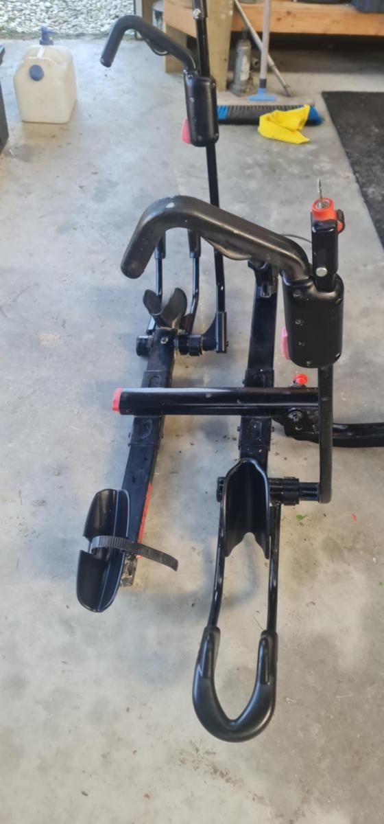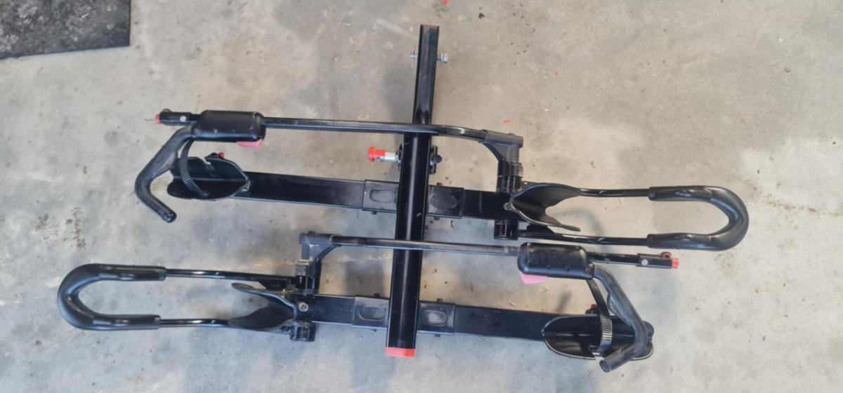 Toe hitch mounted bike rack. Takes two bikes. Please note the bolt set up, I've included photos for reference, to make sure it suits your vehicle. $300. Retails for $700. Pick up only.