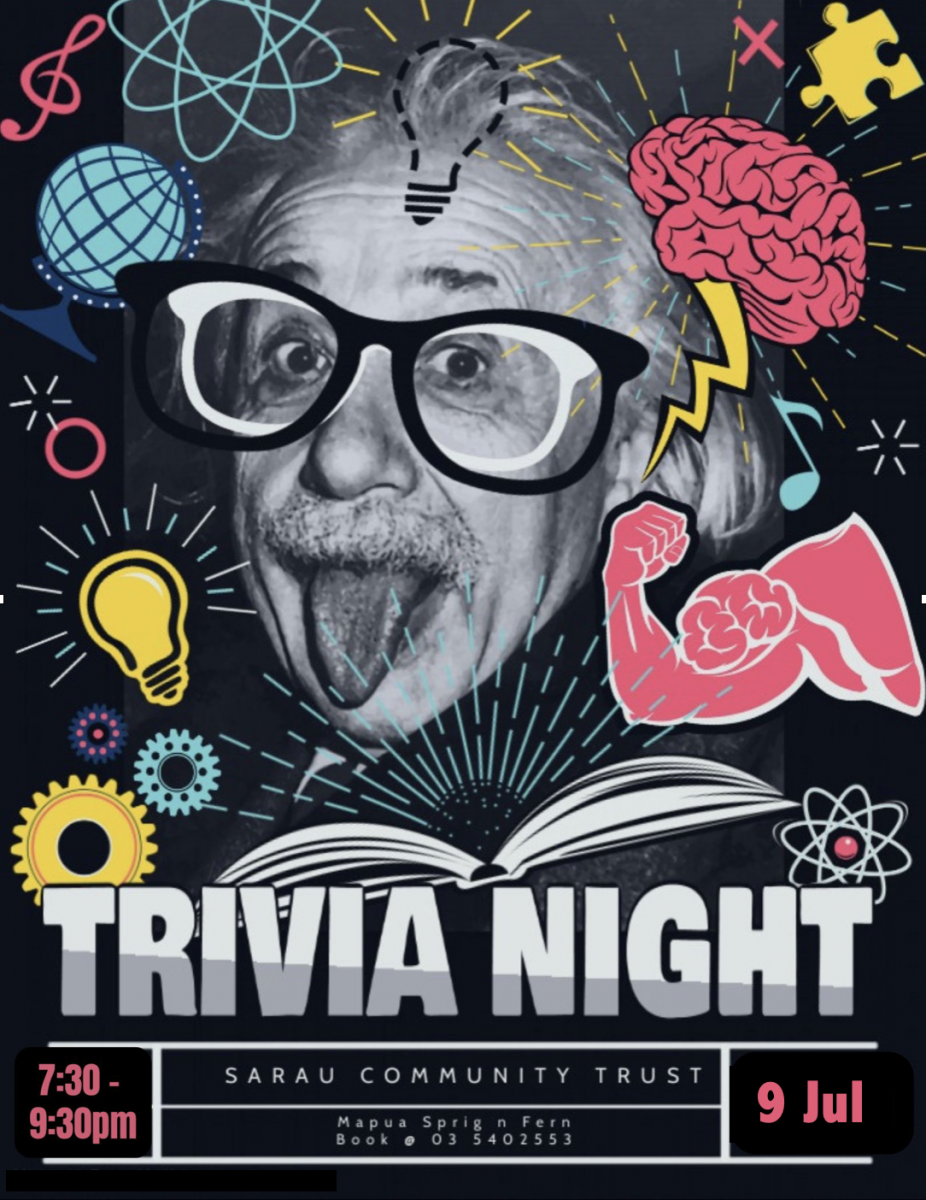 Here’s your chance for a fun night out with friends or family while supporting the Sarau Community Trust. Don't worry if you can't make up a team, just turn up, and we'll fit you in to the winning team!