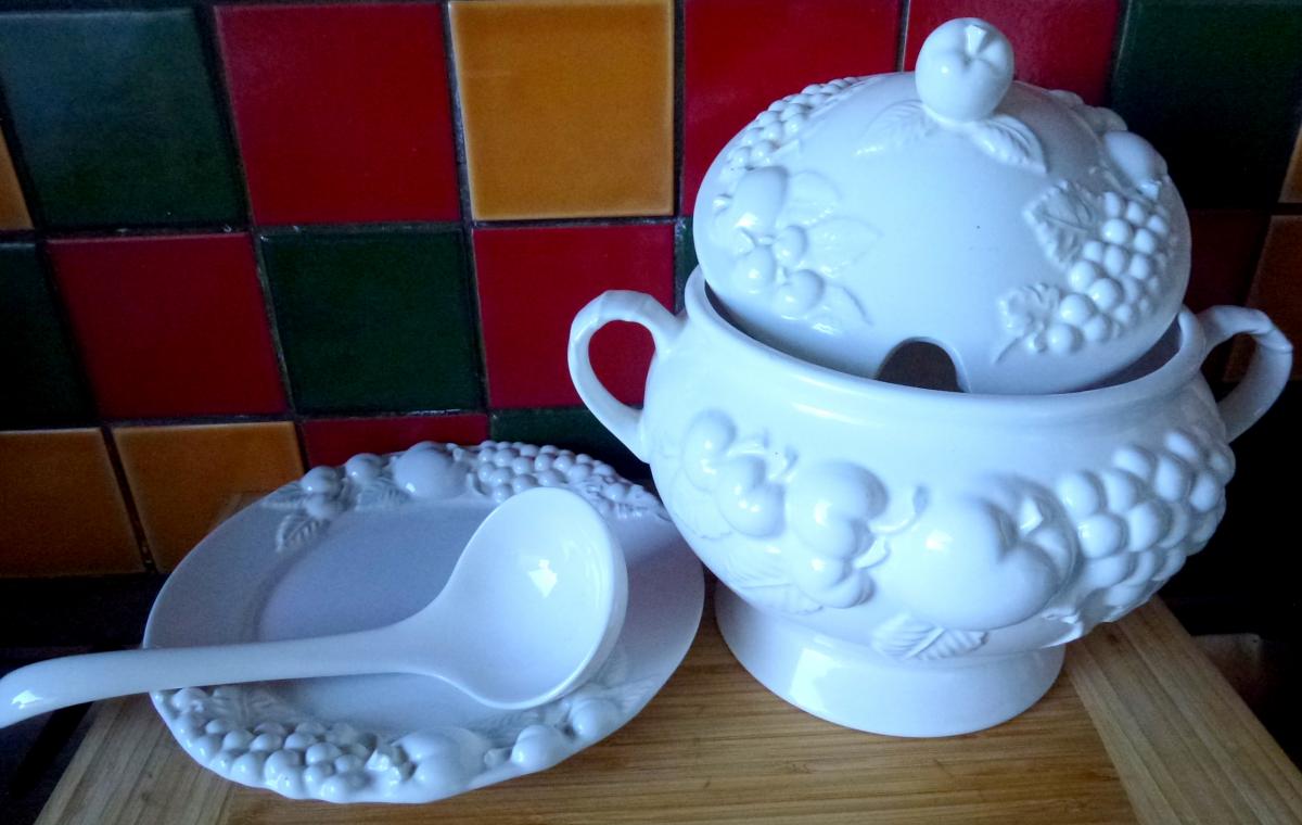 Fabulous set includes Tureen and lid, underplate and ladle.