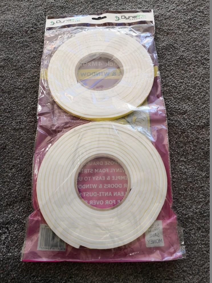 9mm wide x 5mm thick vinyl foam strip with self adhesive tape. Each role is 4m long (Total 8m length pack).
