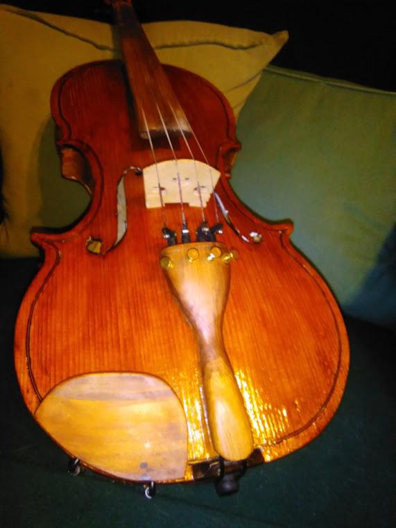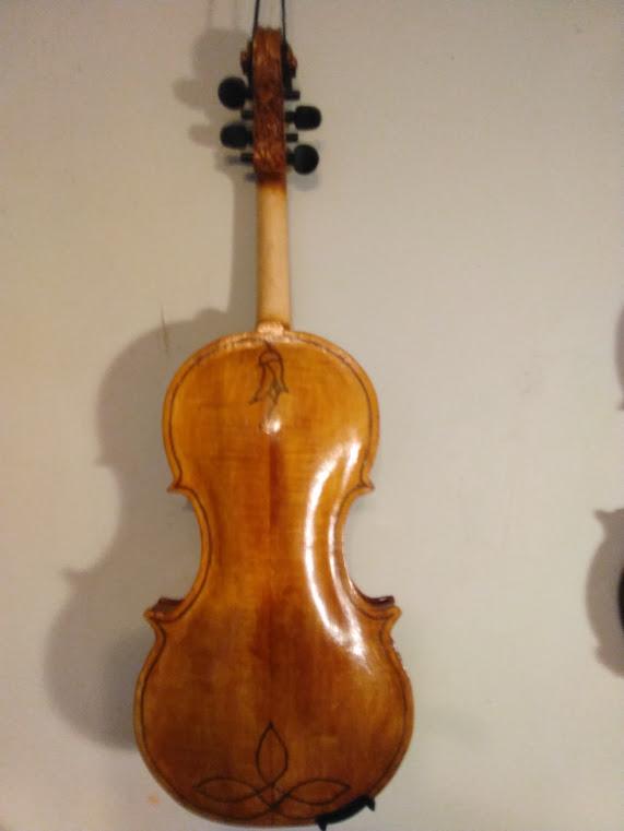 Maple backs, sides and neck, with spruce face. Fingerboards, tailpieces and chins for each instrument are cut from the same pieces of Rimu.