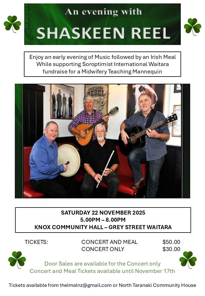 Get ready for a toe-tapping night with SHASKEEN REEL at our Fundraising Concert & Irish Dinner!