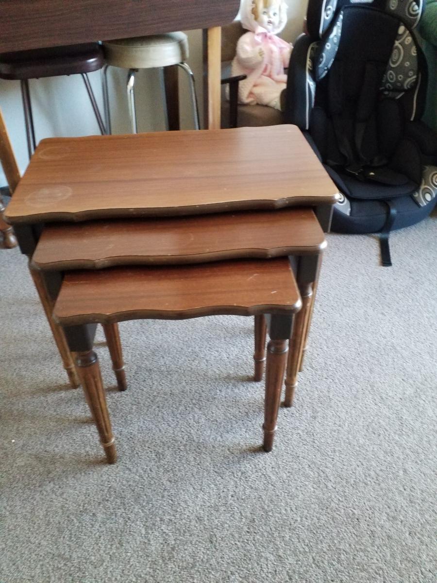 For sale. Nest of 3 tables in good used condition. $45 cash on pick up. Ph 027 474 0467