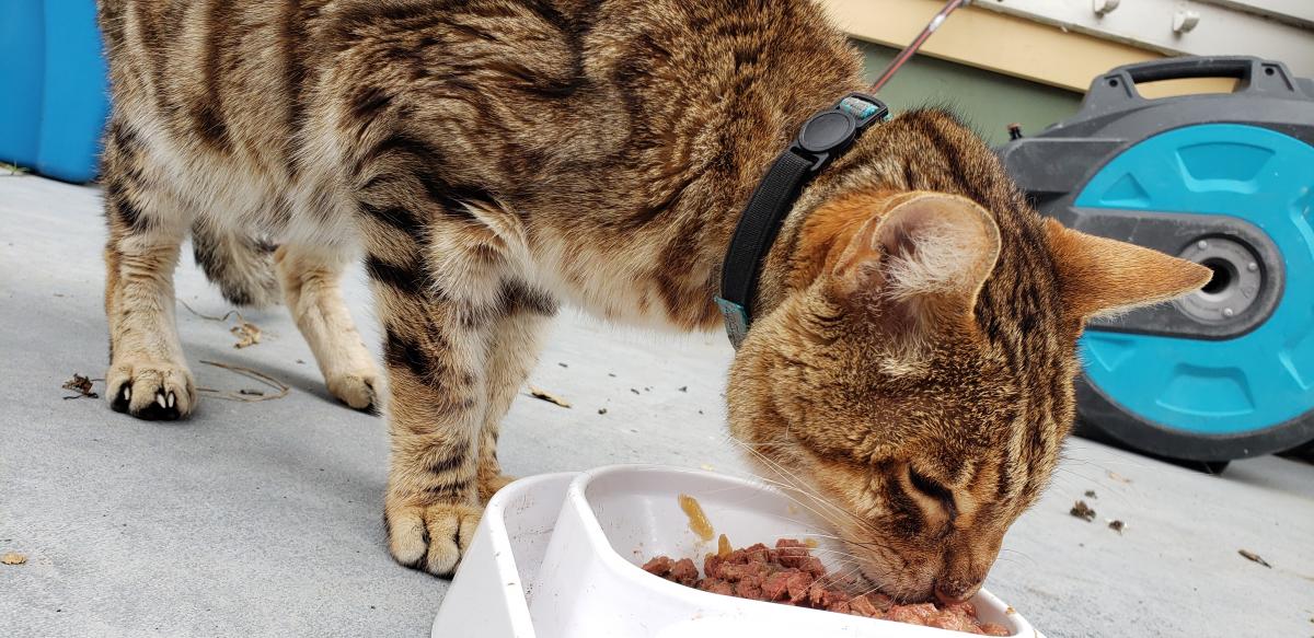 I have found a Tabby Cat with a Blue collar (with a bell)