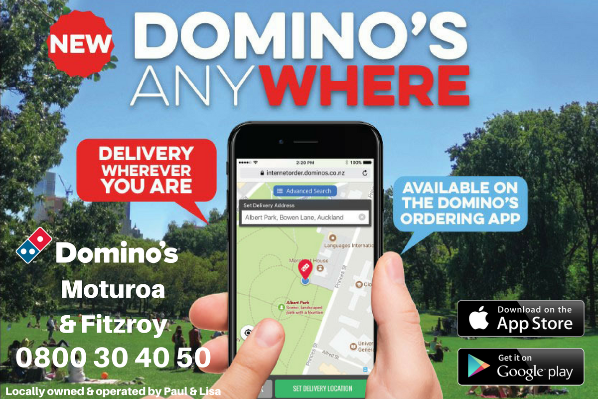 Simply head to the Domino’s website or Ordering App on your smartphone or … View morePizza is a social meal, for sharing with friends and family. With Domino’s Anywhere, you can now order your piping hot pizza directly to outdoor areas like the park or beach, without needing a specific street address.