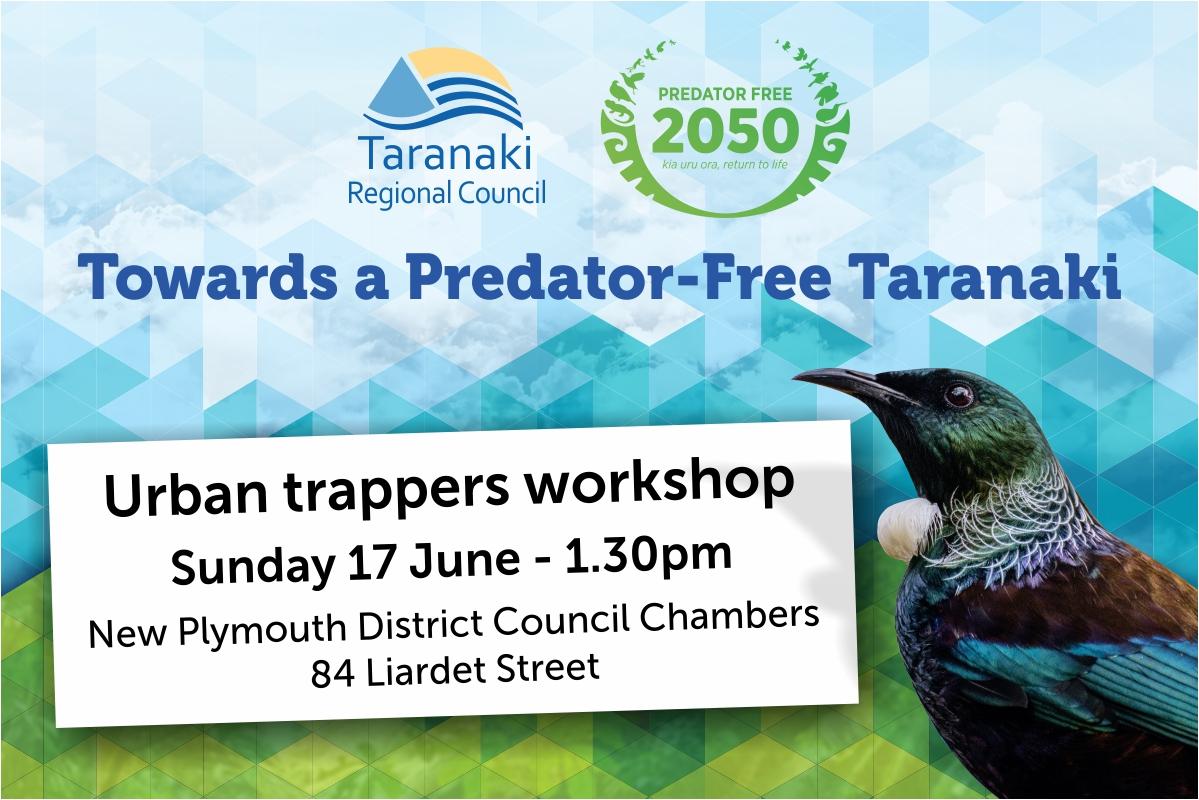 Attend a community workshop this Sunday 17 June and learn how you can support New Plymouth’s wildlife and native plants. The workshop is part of the region-wide biodiversity project, Towards a Predator-Free Taranaki. Reducing predators such as rats in New Plymouth is critical to support the … View moreAttend a community workshop this Sunday 17 June and learn how you can support New Plymouth’s wildlife and native plants. The workshop is part of the region-wide biodiversity project, Towards a Predator-Free Taranaki. Reducing predators such as rats in New Plymouth is critical to support the city’s birds, lizards, healthy eco-systems and other predator control around the region.