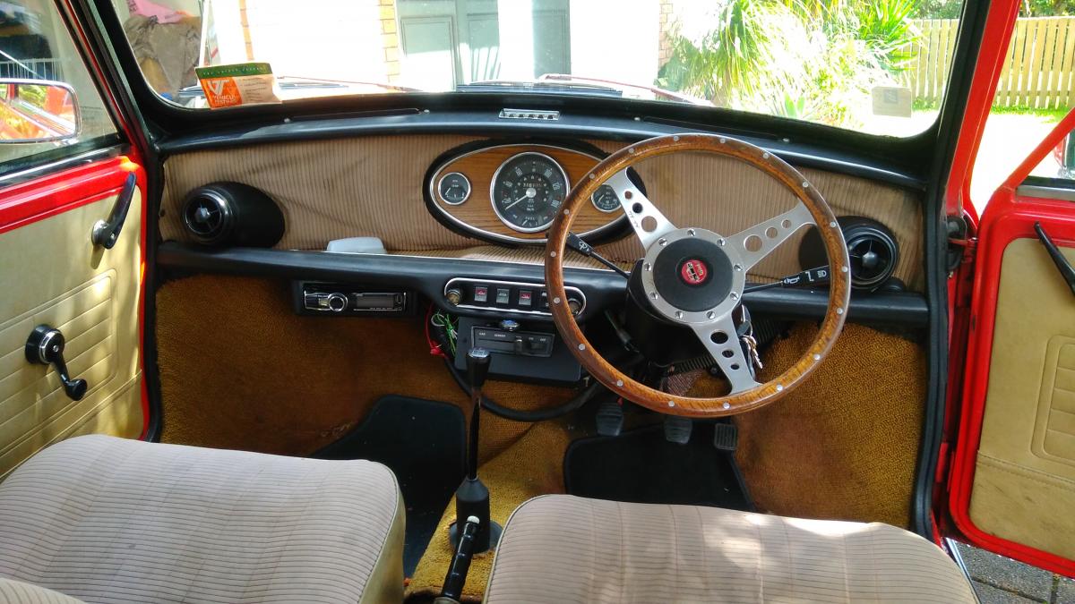 Like any Mini of this generation it leaks a little bit of oil and she has a few minor rust spots.