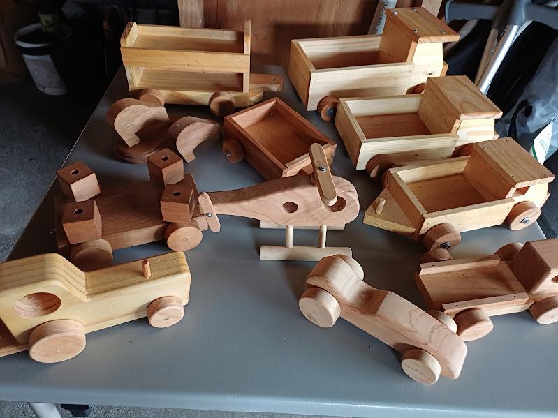 Selection of wooden toys. Priced from $12 to $19