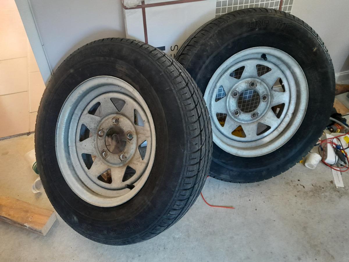 13 inch Galv trailer wheels pair good tyres 8 ply