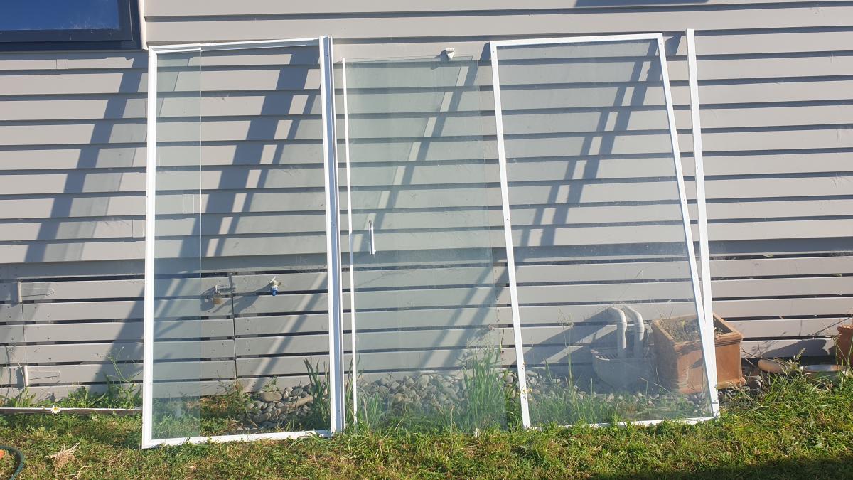 900mm shower screen and door which were configured as a right angle on a 900mm base, good condition, just need a clean as been in storage, $350