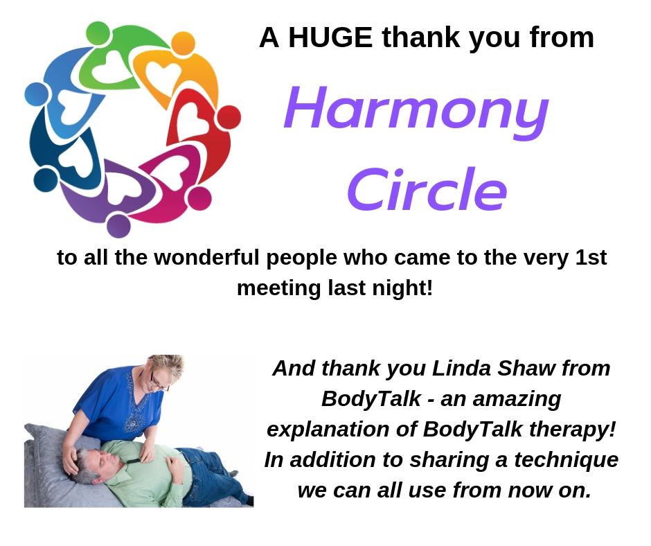 An amazing 1st meeting of Harmony Circle last night with over 20 people in attendance! Some truly wonderful and interesting people met for the first time and we all look forward to meeting you again - and many more! Thank you for making it a very special evening.