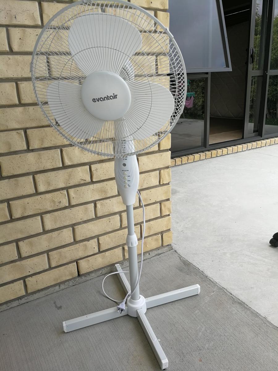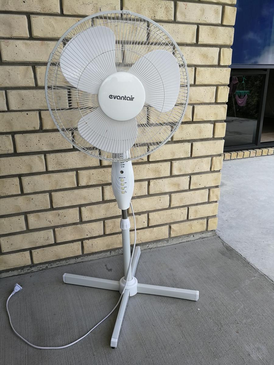 We have two spare Evantair Floor Fans as shown in photos. In good condition and runs well.