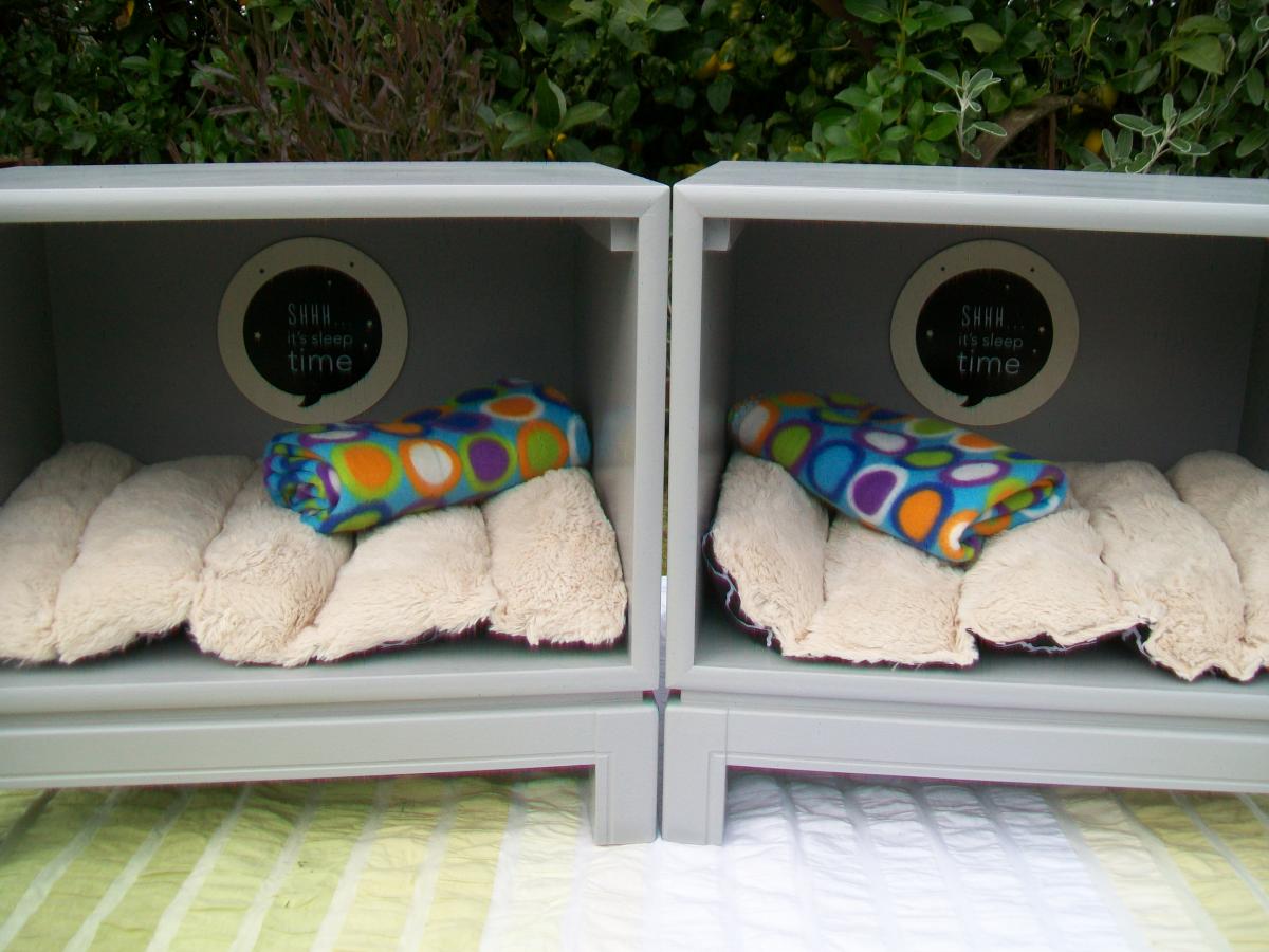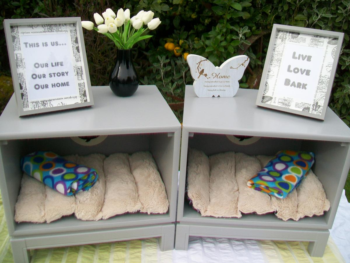 ***Two grey bedside cabinets/dog or cat bed. Suitable for a very small dog, cat or bunny. $70.00 for both.