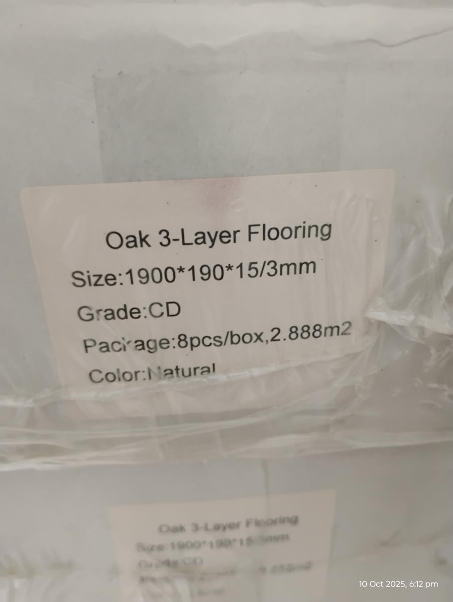 Premium Engineered Hardwood flooring, natural oak colour, 21 sqm in 7 packages, $80 per sqm