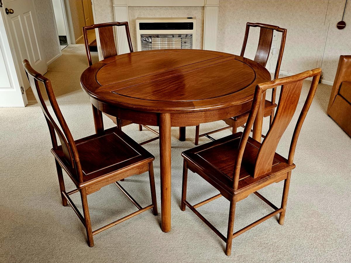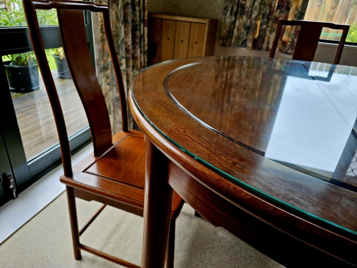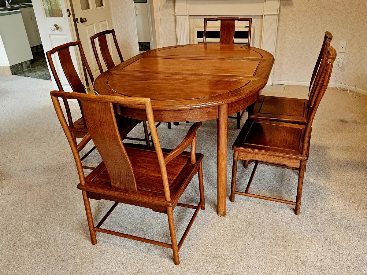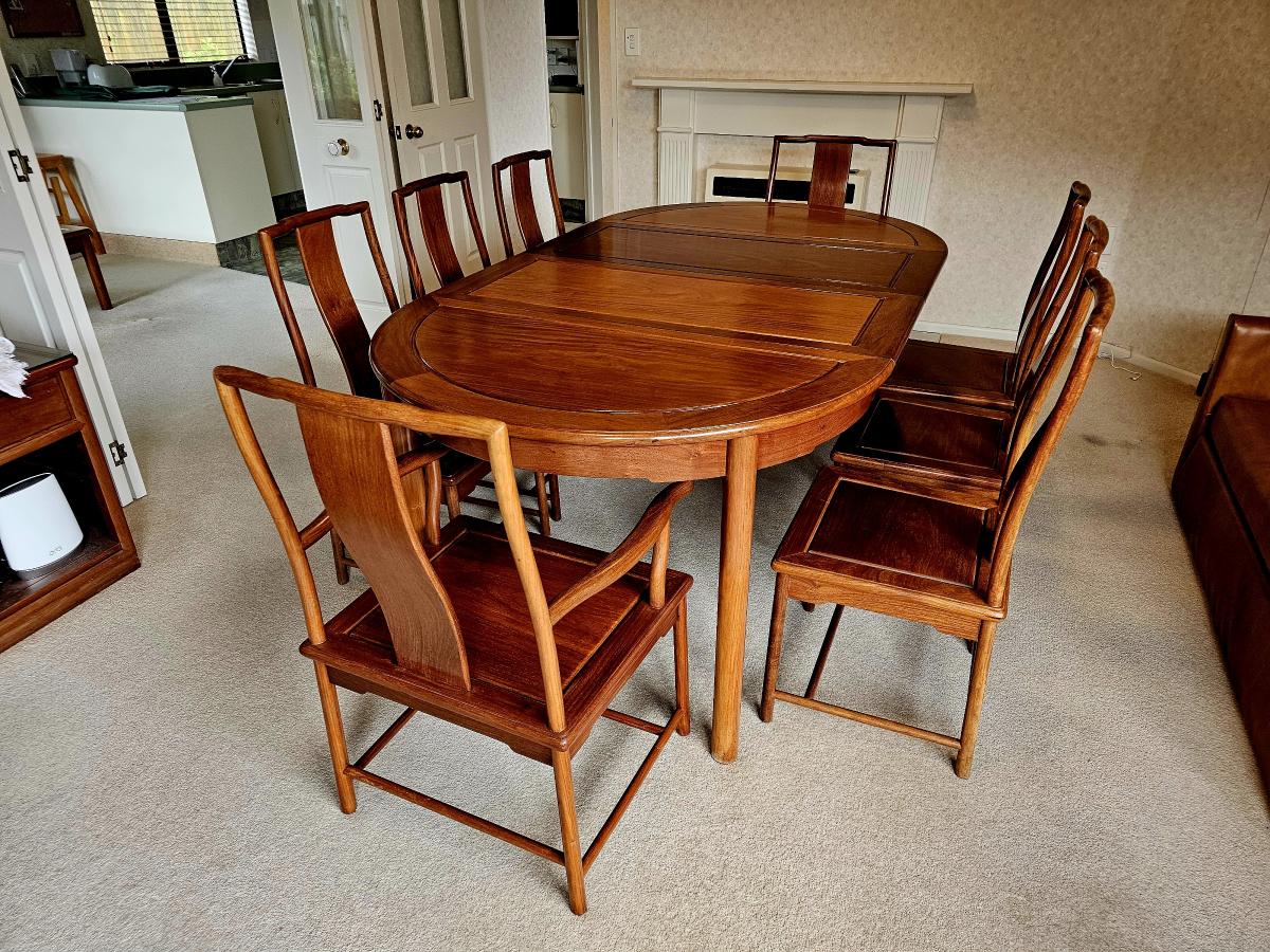 Authentic Ming-style dining table suite, purchased in Hong Kong over 30 ago. A timeless, beautifully crafted set consisting of: