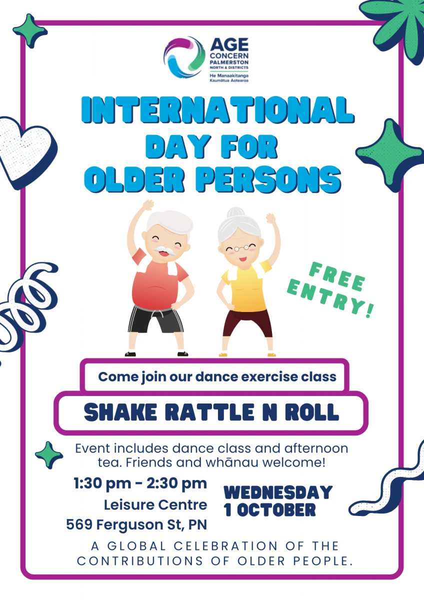 This Wednesday is International Day for Older Persons: a global celebration of the contributions of older people. We are celebrating by turning our usual Shake, Rattle n Roll dance exercise class into a free fun afternoon! We will have about 30 min of our dance … View moreCome party with us on IDOP day!
