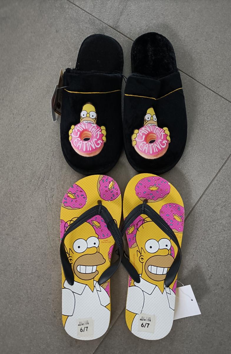 Men's Simpsons brand scuff slippers plus Simpsons thongs.