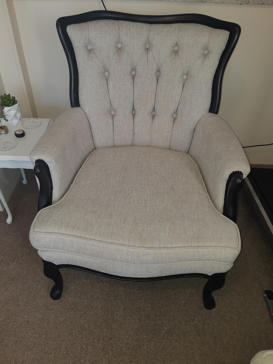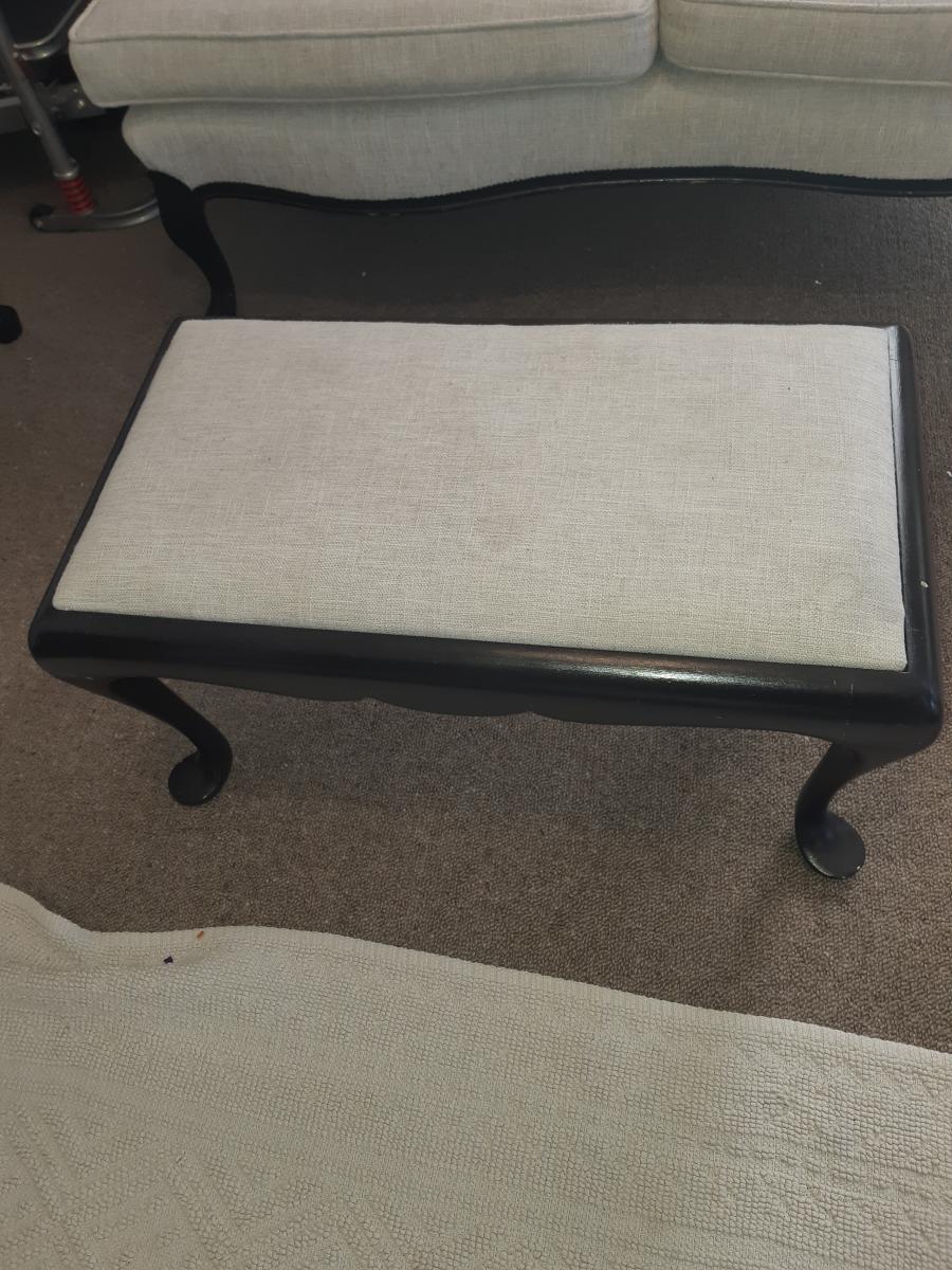 A very much loved lounge suite. Queen Anne vintage style. Restored to love. Has arm rest covers.