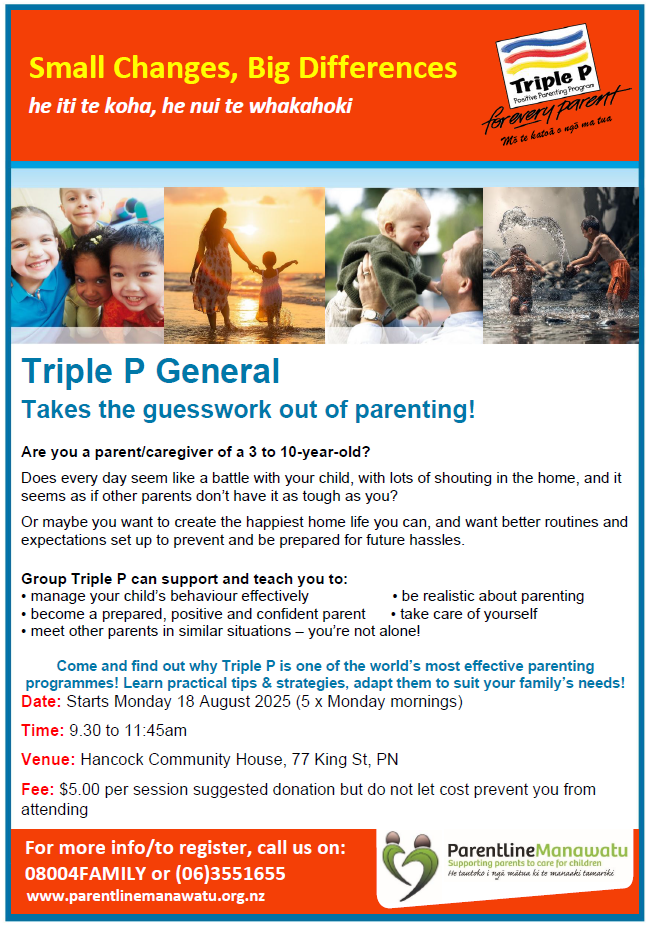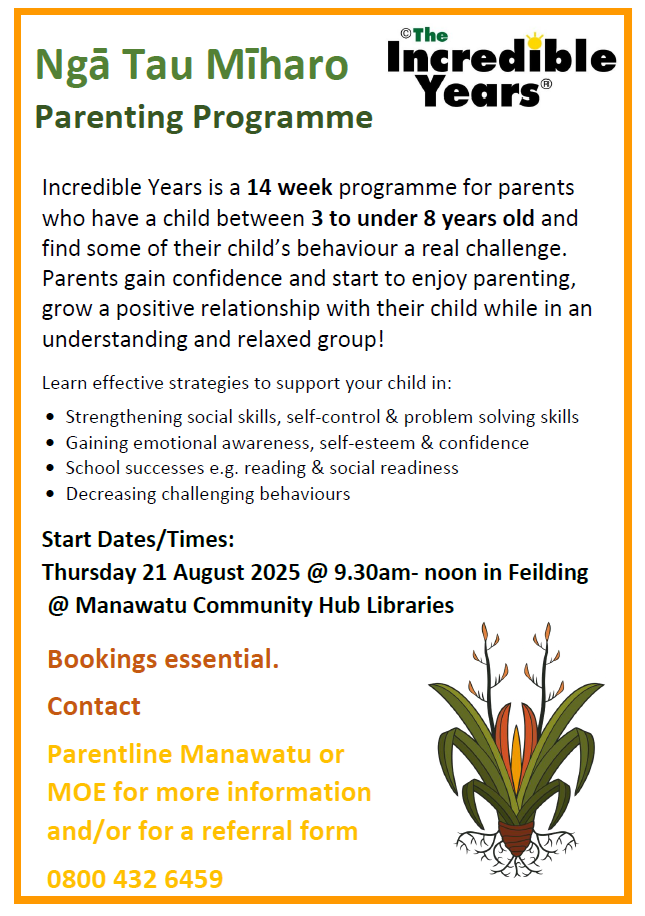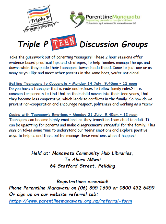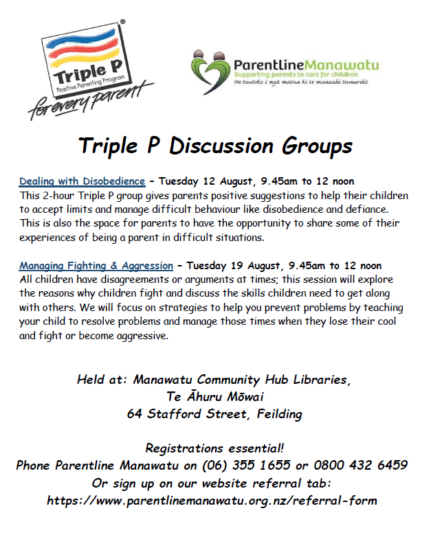 Parentline has parenting programmes coming up soon. See flyers and documents for information and call us on 0800 4 326459 to register or inquire.