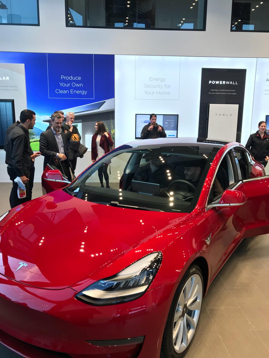 I had the chance to go to the Tesla Store on K Road recently and view the Tesla Model 3 in person for the first time. It is the left hand model, and it is only there for a brief amount of time, so you should be quick before it leaves if you want to see that beauty in person!