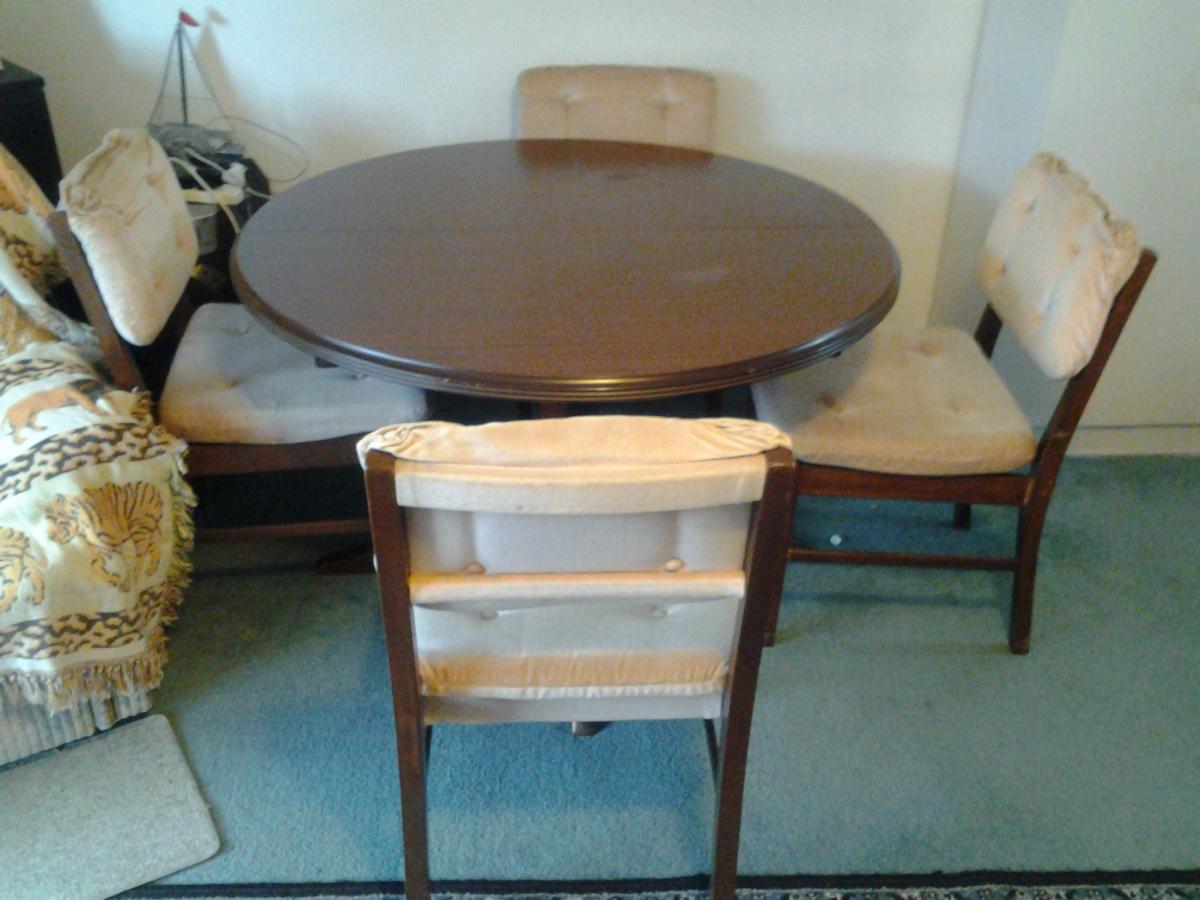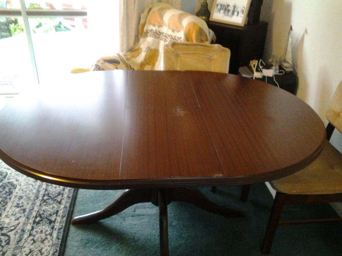 For sale Dining Suite Round Table 117cm in diameter which extends to an oval table 1550cm long with 6 chairs