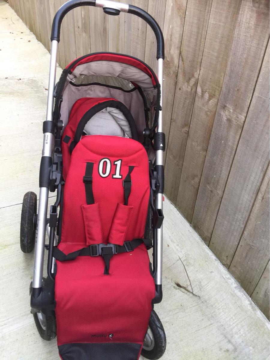 Mutsu Twin pram has different 3 styles you can use for new born, for 2 kids and for single kid. The pram is in excellent condition if have any questions feel free to contact me.