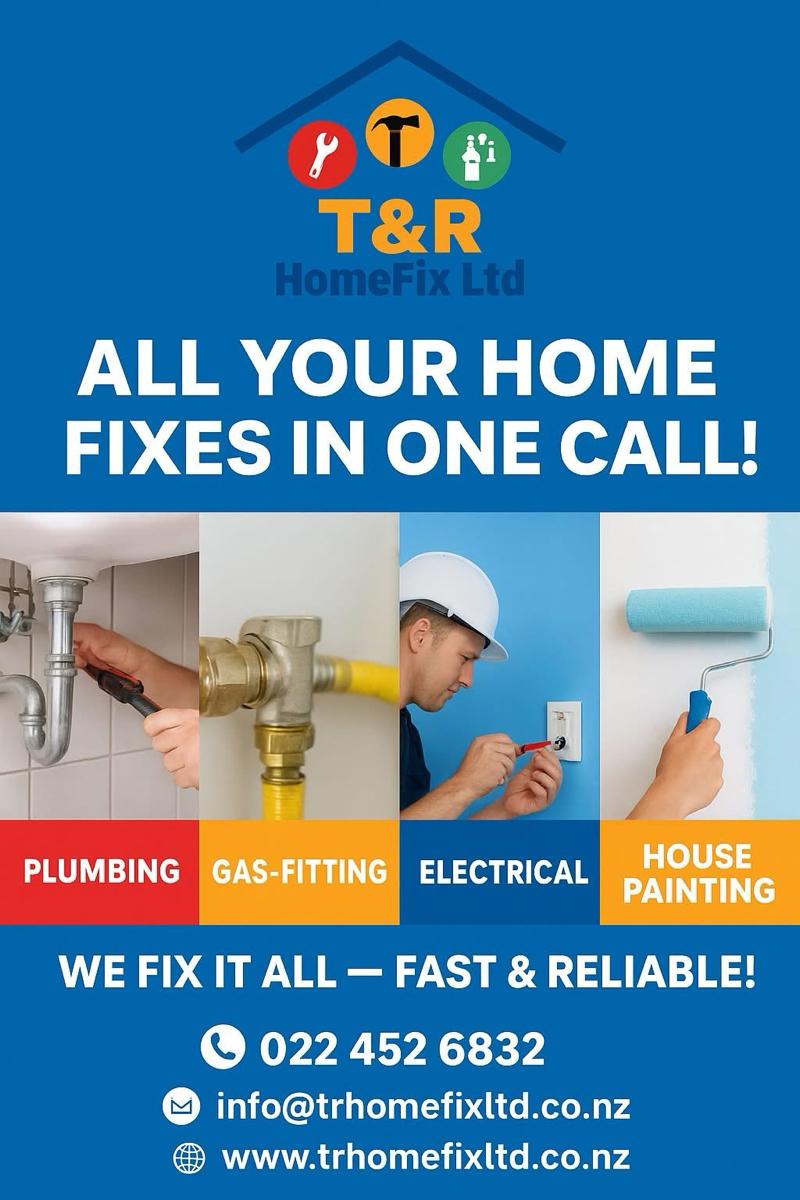 #PlumberAuckland #ElectricianNZ #PapakuraTrades #HomeFixNZ #GasFitting #HousePainting #TRHomeFix