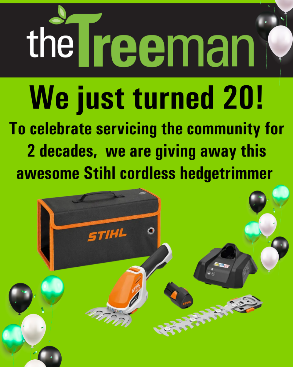 To celebrate 20 fantastic years in business and to thank the community for supporting our local business, we are giving away a STIHL hedge trimmer and grass cutter. To enter, go to the contact page on our website and enter STIHL in the message box.