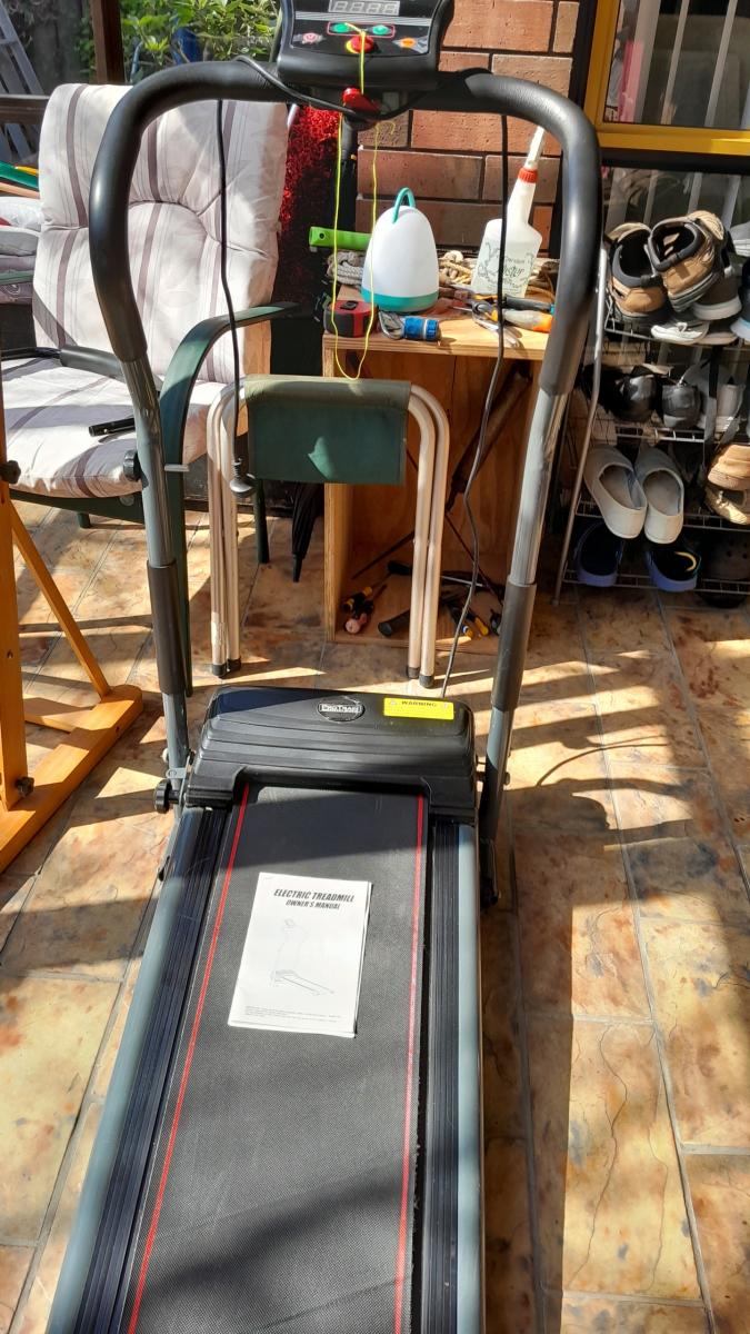 Electric treadmill. Folds away neatly. Suitable adults.