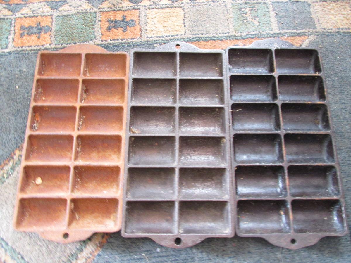 Three cast iron gem irons. One needs heating & oiling.