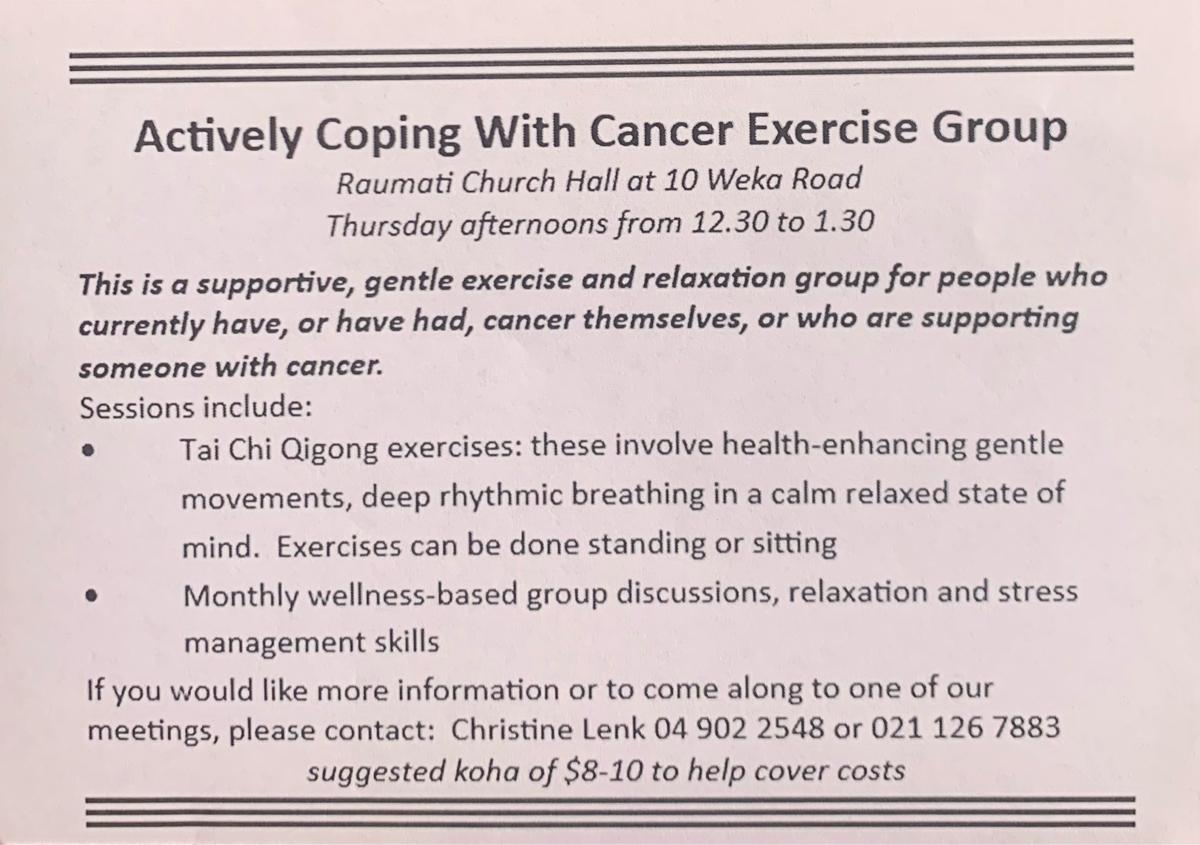 The Actively Coping with Cancer group currently has spaces available. Details are below. 👇