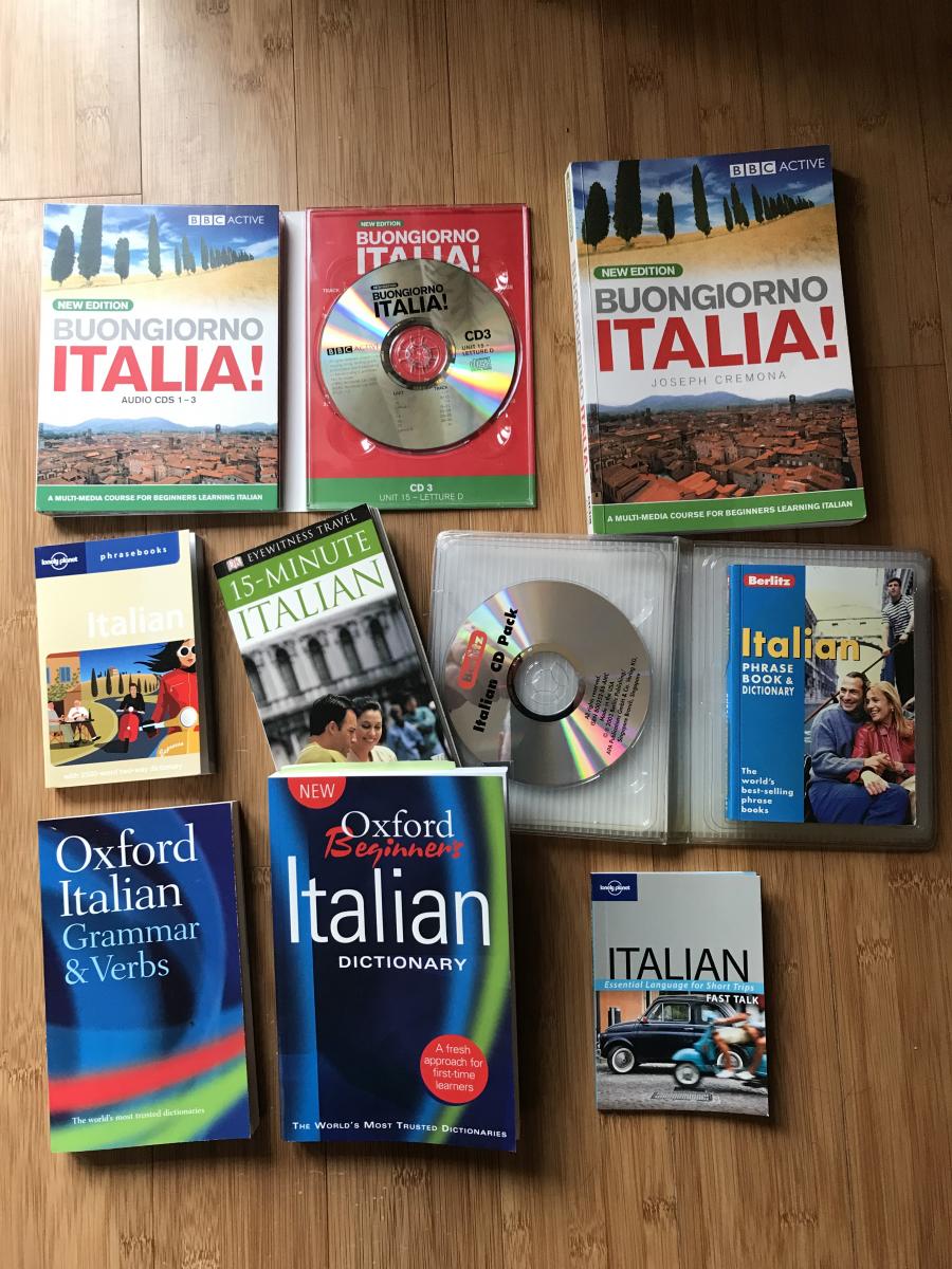 All you need to learn italian. Phrase books discs dictionary etc
