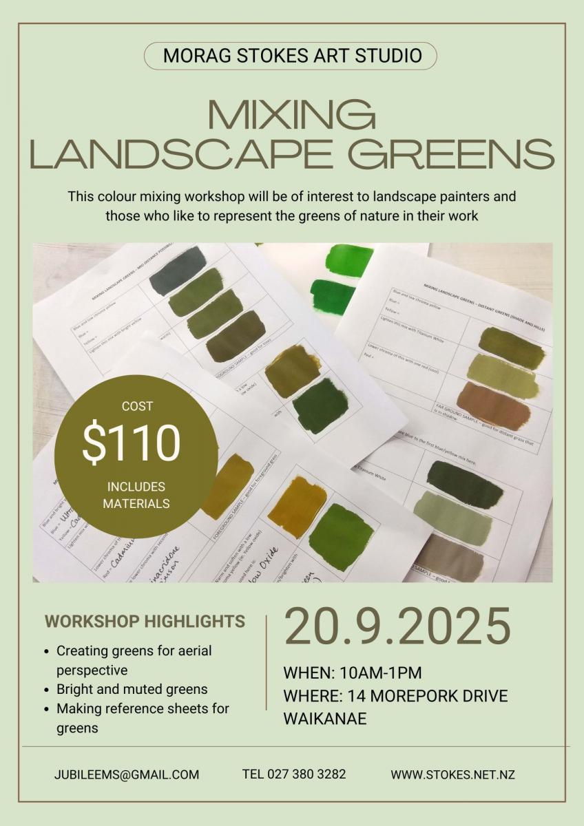 This colour mixing workshop will be of particular interest to landscape painters and those who like to represent the greens of nature in their work. We will focus on creating palettes which work well for foreground, mid distance and distant greens. Green can be a difficult colour to get right in … View moreThis colour mixing workshop will be of particular interest to landscape painters and those who like to represent the greens of nature in their work. We will focus on creating palettes which work well for foreground, mid distance and distant greens. Green can be a difficult colour to get right in landscape work as is doesn’t ‘travel’ well from near to far. Some very far greens are scarcely green at all, with their saturation, value and hue changing as they recede into the distance. You will learn how to create greens that give this sense of aerial perspective. You will also learn how to create the brightest and cleanest colour mixes, greens in particular, from a Modern (Organic) colour palette. Suitable for beginners as well as experienced artists.