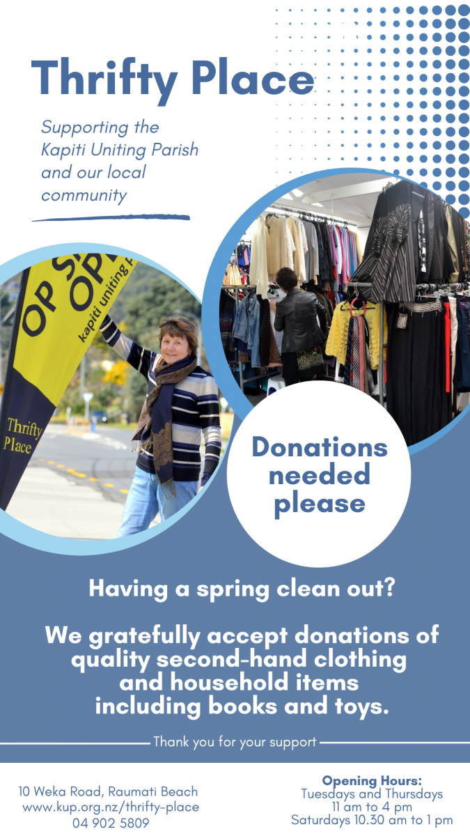 Thank you for your ongoing support, supporting Kapiti Uniting Parish and the local community