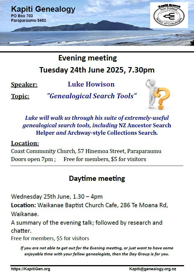 Luke Howison will help us find and use extremely useful genealogical search tools.