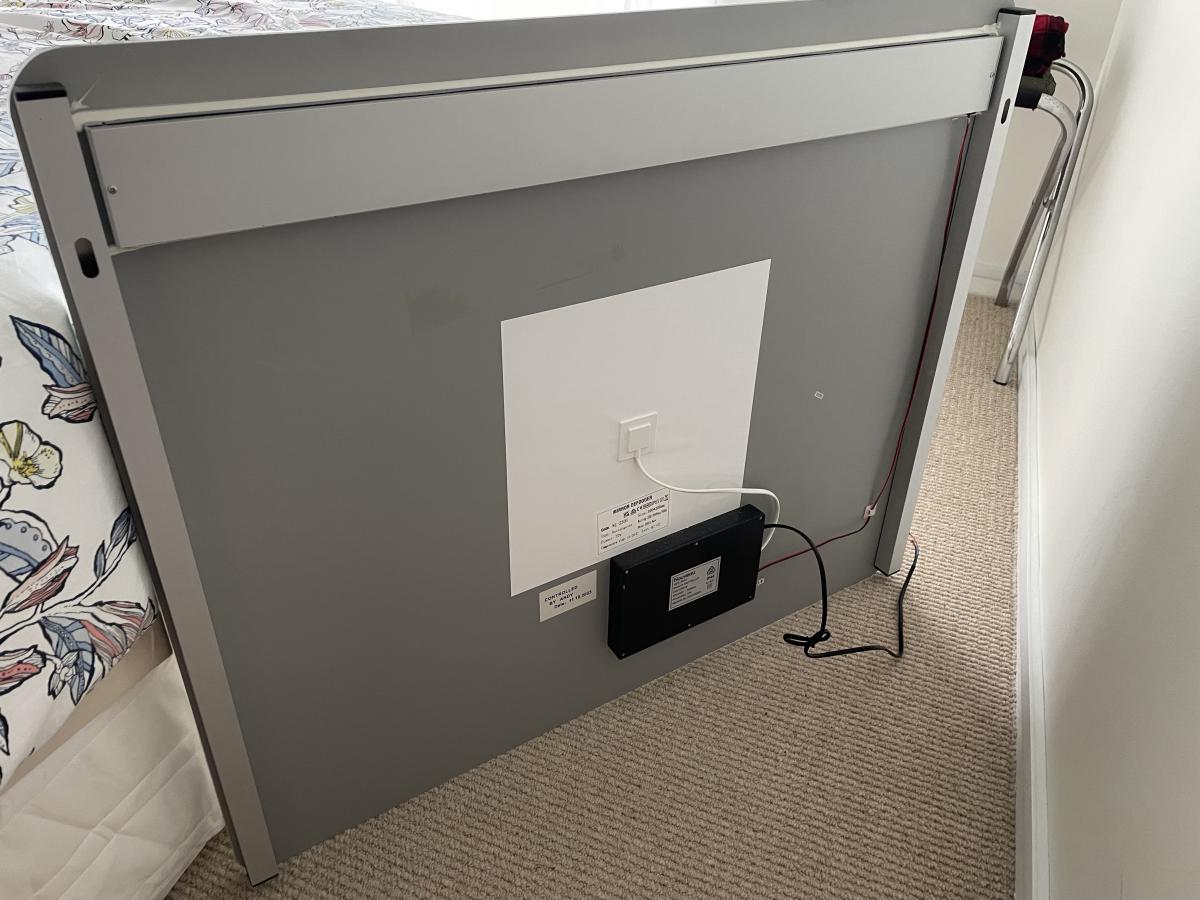 It was installed in our new bathroom but we quickly realised we missed having a cabinet above the wash hand basin. Our mistake is your gain