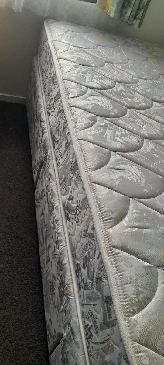 Sealy young posturepedic plush. Has 2 drawers in base, on castors.
