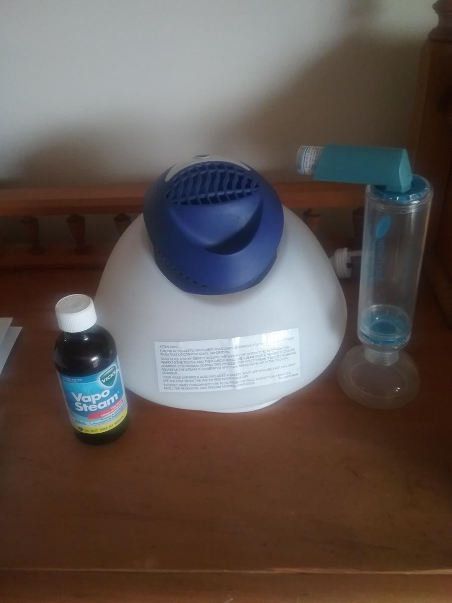 Great vaporizer which helps to clear the airways at night. Comes with 1/3 of a bottle Vapo Steam and an inhaler which has never been used :)