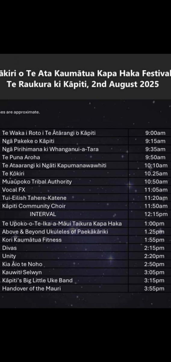 Kapiti community groups will present programmes at Te Raukura lasting all day. Free entry