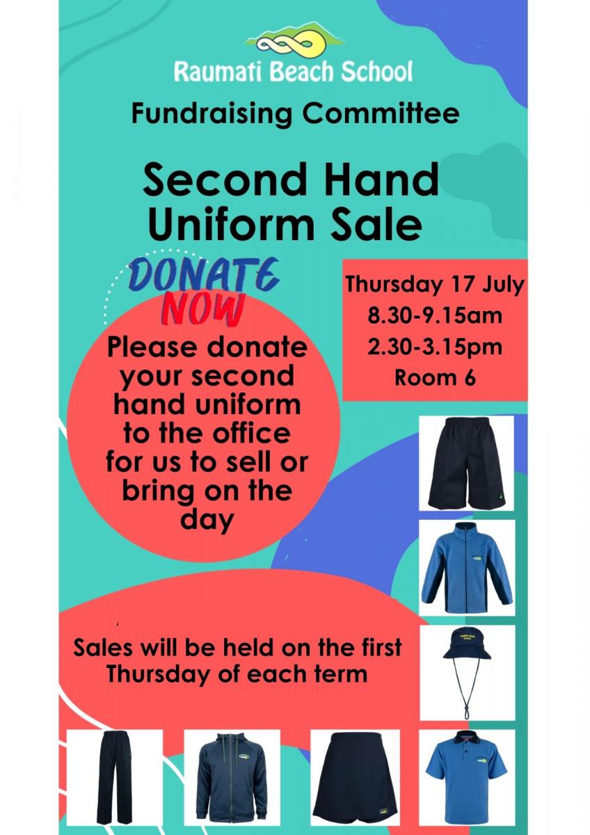 If … View moreThe Raumati Beach School Fundraising Committee are holding a Second Hand Uniform Sale next Thursday. If you have any items to donate please bring them on the day or please drop them off at the school office. Donations can be made all throughout the year. We will be holding a sale each term.
