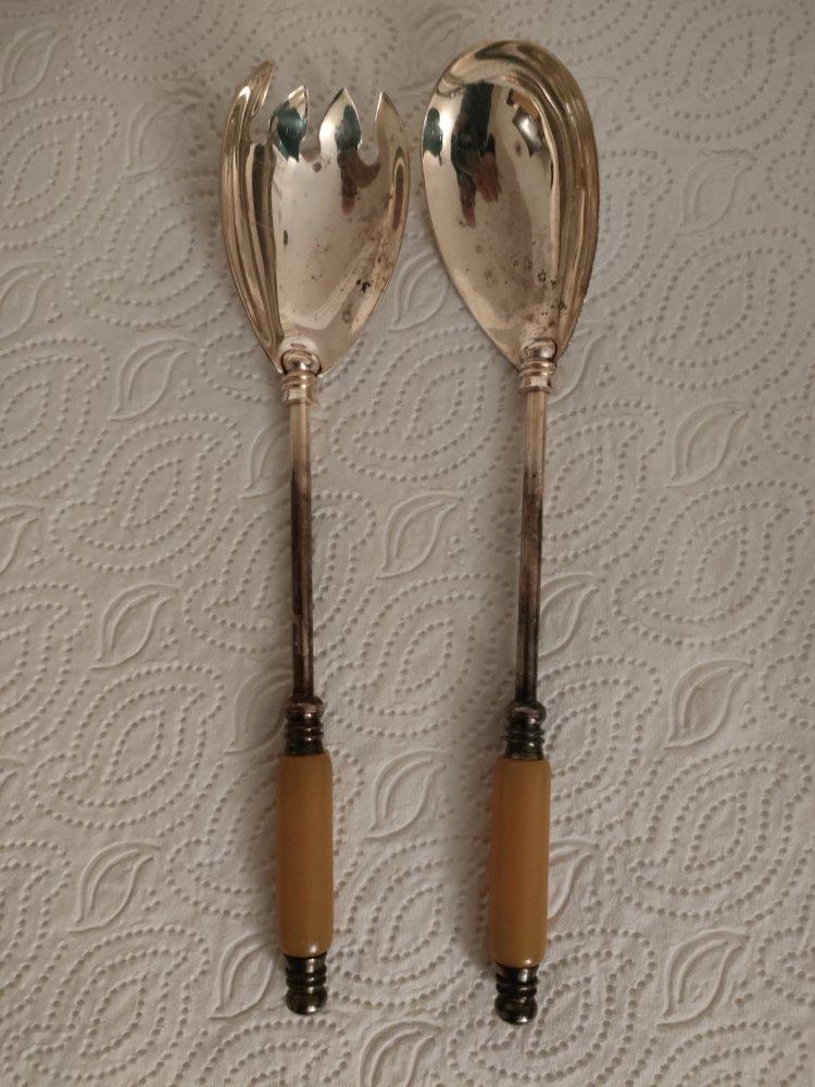 These salad servers would be a wonderful addition to a vintage dining setting.