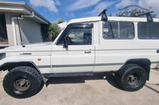 A white 1997 Toyota Landcruiser 70 series “Troopy” and a 1987 Harley Davidson Sportster motorcycle were also stolen.