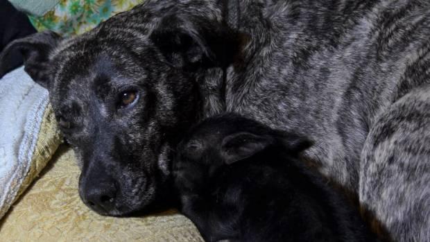 Hi neighbours - a wild piglet found on the road in Thames has become best friends with an ex-pig hunting dog.