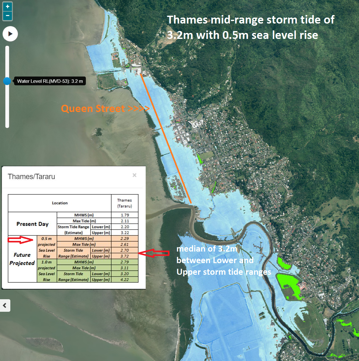 The Herald story uses a map from my blog showing one scenario for projected sea level rise for Thames Township and quotes Mayor Sandra Goudie. Sandra makes some good points that local councils will need much greater financial help from Central Government to adapt to sea level rise. But she glosses over the fact that right now her Council has the financial capability and the expertise (with Regional Council) to identify and map coastal flooding and other hazards due to sea level rise. This mapping and identification needs to be done by councils right now, and there are no excuses for delay.