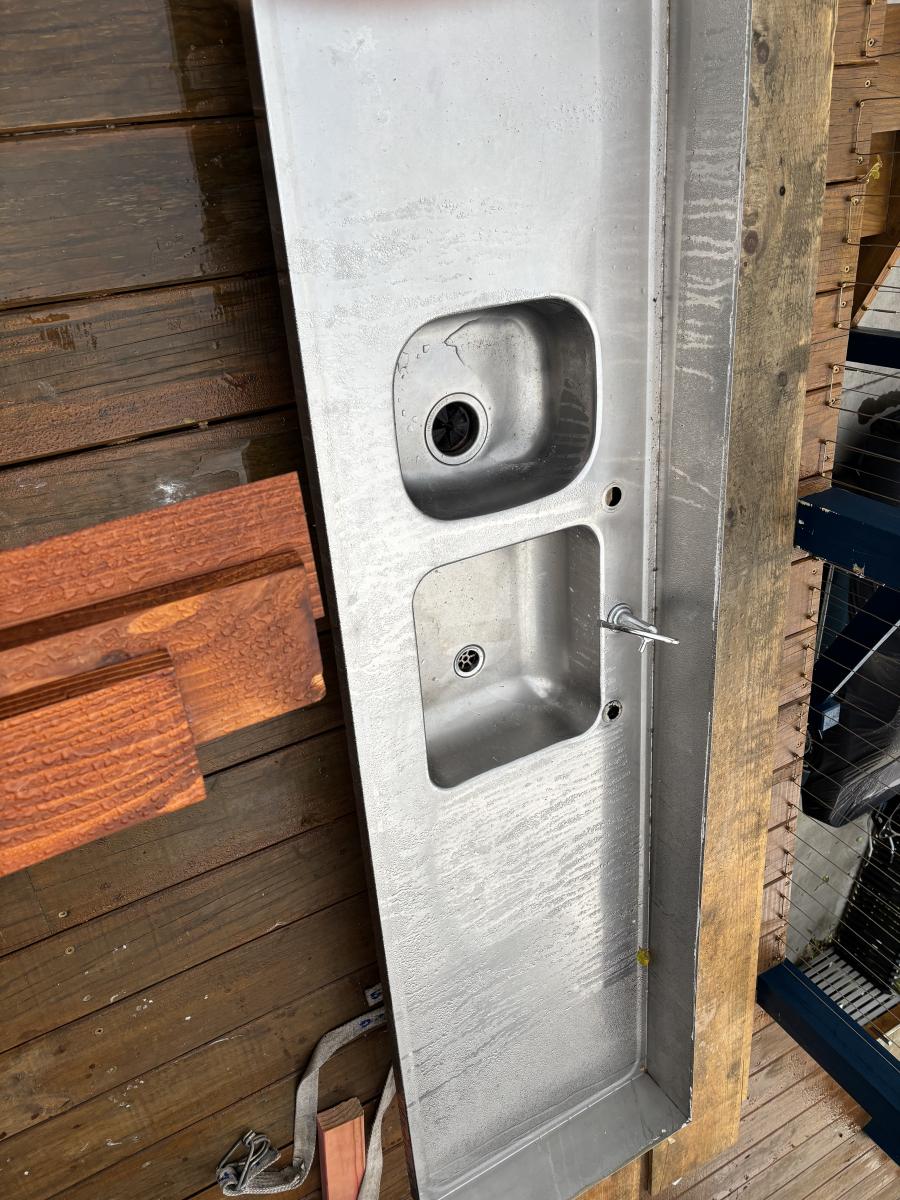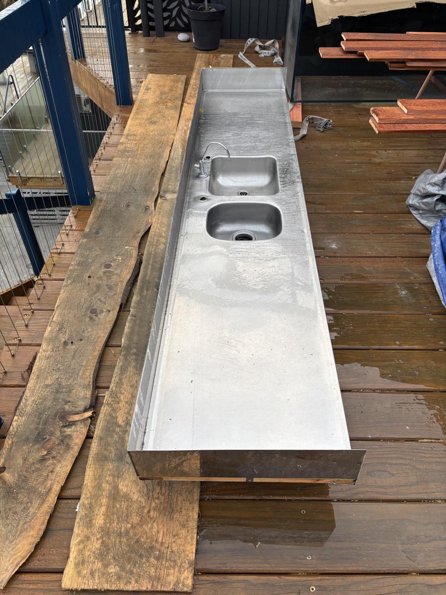 Stainless steel twin sink 2.84 long 600 wide. Pick up