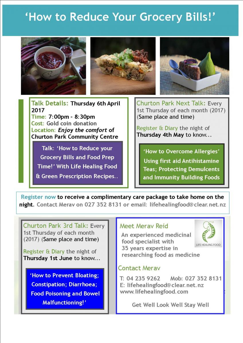 Merav Reid, an experienced medicinal food specialist is back at the centre on 6 April from 7-8.30pm to deliver the next monthly talk. Talks are held the first Thursday of each month and entry is by gold coin … View moreTopic of this monthly - How to reduce your grocery bills and food preperation time