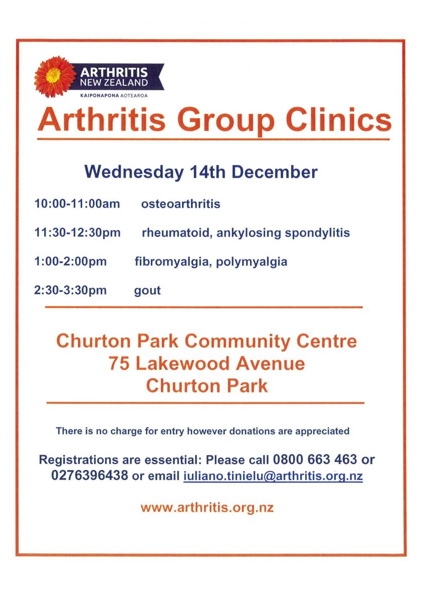 For more information phone 027 6396438 or email iuliano.tinielu@arthritis.org.nz