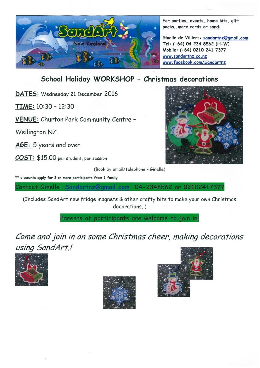 To register for Sand Art - Sandartnz@gmail.com or 021 02417377