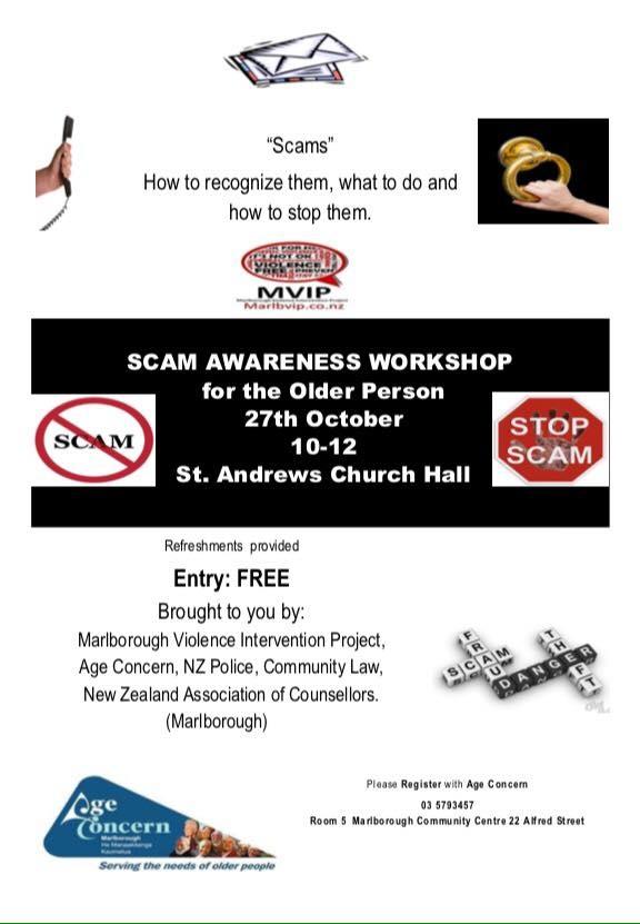 We are helping to run a Scams awareness workshop aimed at older people in Marlborough, as all too often, it is this age group that are targeted by the scammers.